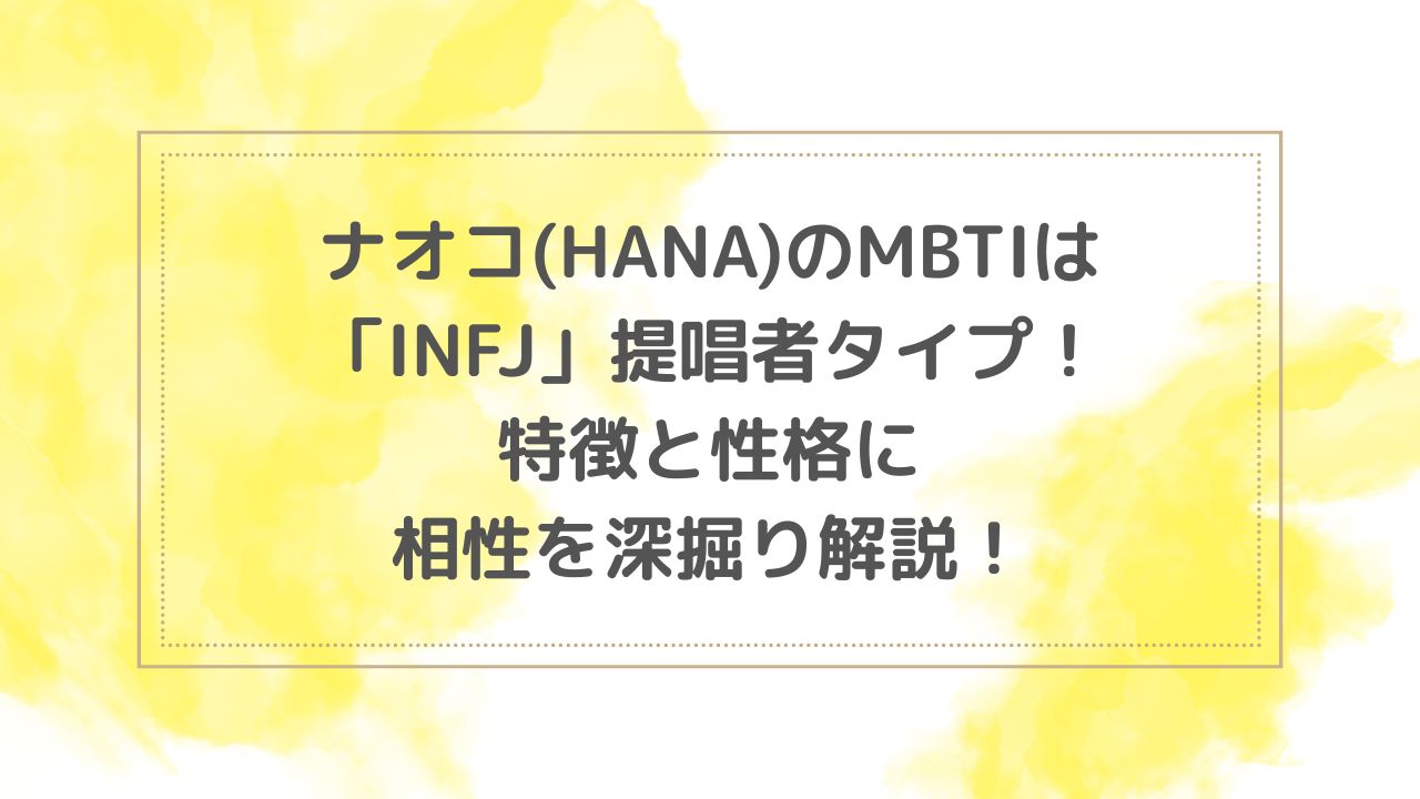 HANAのNAOKO(ナオコ)さんのMBTIは、「INFJ(提唱者)」タイプだと公表されています!
