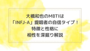 大橋和也のMBTIはINFJ-A提唱者自信タイプ!特徴と性格に相性を深掘り解説 大橋和也さんのMBTIは、「INFJ-A(提唱者の自信)」タイプだと公表しています! とにかく優しいと言われている大橋和也さんですが、INFJ-A(提唱者の自信)はどんな特徴...