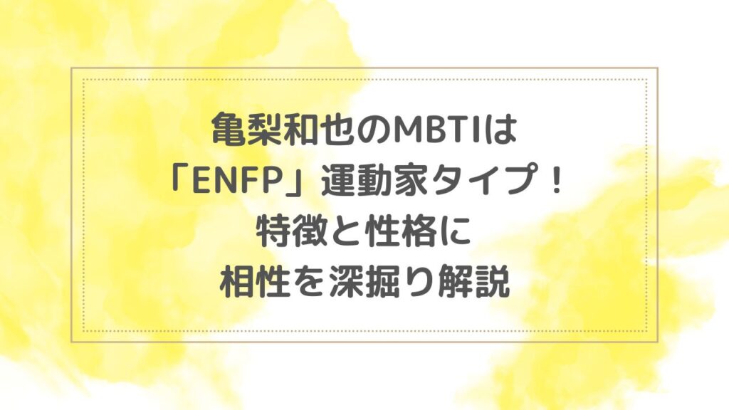 元KAT-TUNの亀梨和也さんは、MBTIを「ENFP(運動家)」だと公表しています! そこで今回の記事では、亀梨和也さんのENFP(運動家)の特徴や性格を詳しく調べました^^ どんなタイプなのか、そしてENFP(運動家)タイプと相性が良いMBTIについても記載して... -