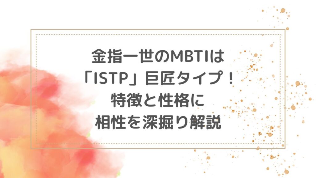 金指一世のMBTIはISTP巨匠タイプ!特徴と性格に相性を深掘り解説
